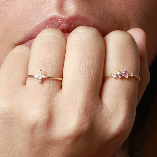 Anel Colorido em Prata 925 com Banho de Ouro e Zircônias