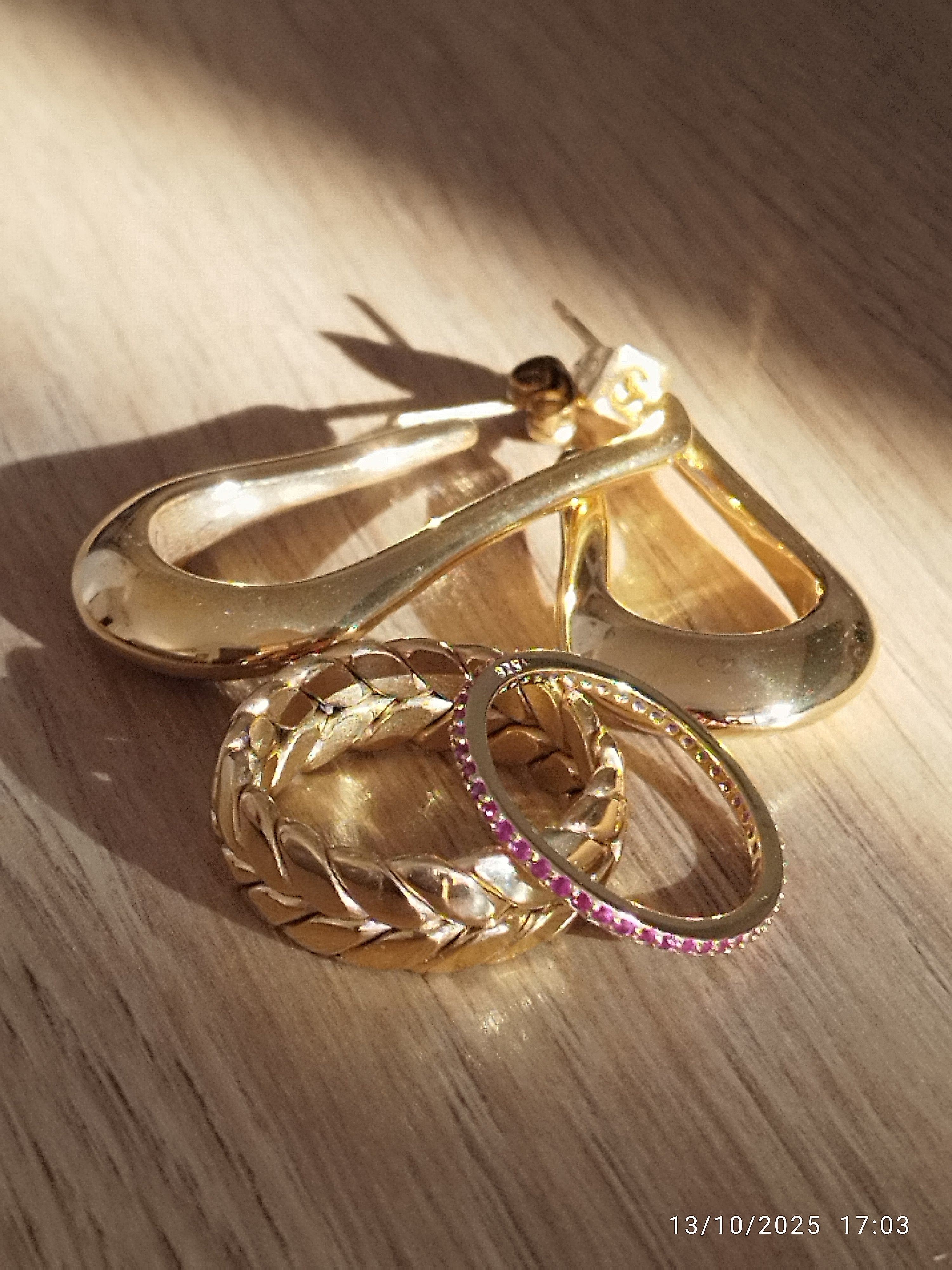 EsgotadoAnel Banho de Ouro e Detalhes Ovais