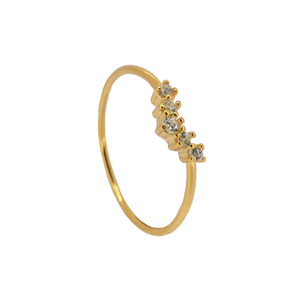 Delicado anel com zircônias brancas, perfeito para mulheres femininas e elegantes que apreciam um toque de brilho sutil. Disponível em prata 925 banhada a ouro.