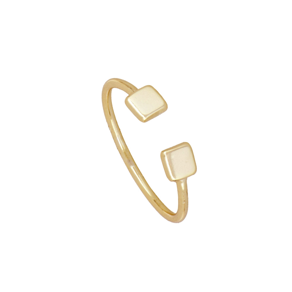 Anel moderno com design minimalista de quadrados, disponível em prata 925 banhada a ouro 14k. Uma peça elegante e versátil, perfeita para mulheres que apreciam um toque contemporâneo no visual.