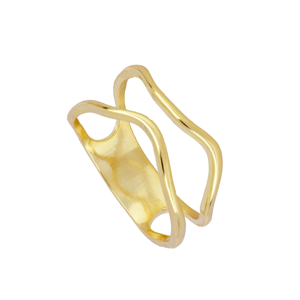 Anel moderno com design vazado e linhas fluidas. Disponível em prata 925 banhada a ouro.