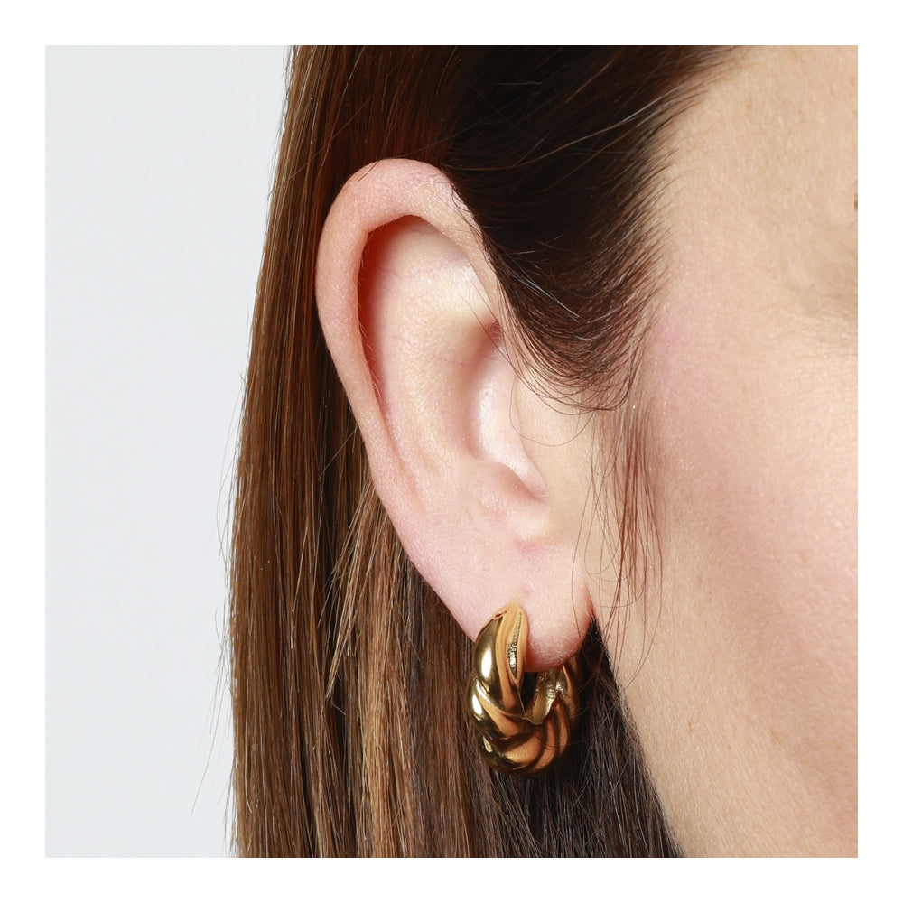 Delicados brincos em formato trançado, disponíveis em aço inoxidável com banho dourado. Com fechamento de pressão, possuem tamanho compacto e elegante de 20x6mm. Fabricados em aço 316, garantindo resistência e estilo atemporal. Perfeitos para adicionar um toque sofisticado ao seu dia a dia.